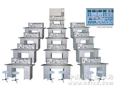 (三) 示教控制臺(tái):由示教實(shí)驗(yàn)操作桌、實(shí)驗(yàn)臺(tái)、演示控制屏組成,能分別控制12臺(tái)學(xué)生實(shí)驗(yàn)臺(tái)的電源。演示屏立在實(shí)驗(yàn)臺(tái)上,尺寸為160×70cm,用于講解、演示。