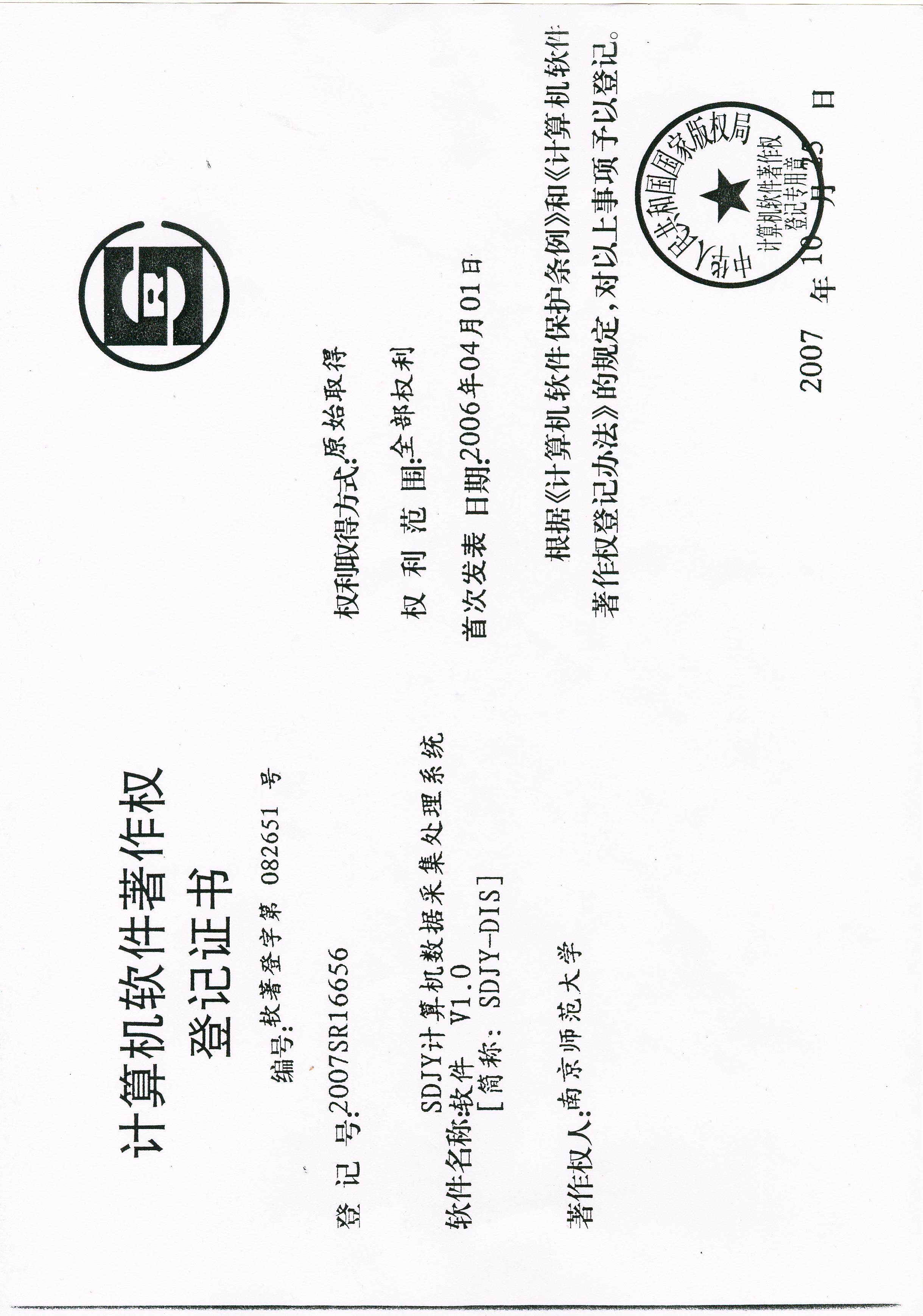 計算機軟件著作權登記證書