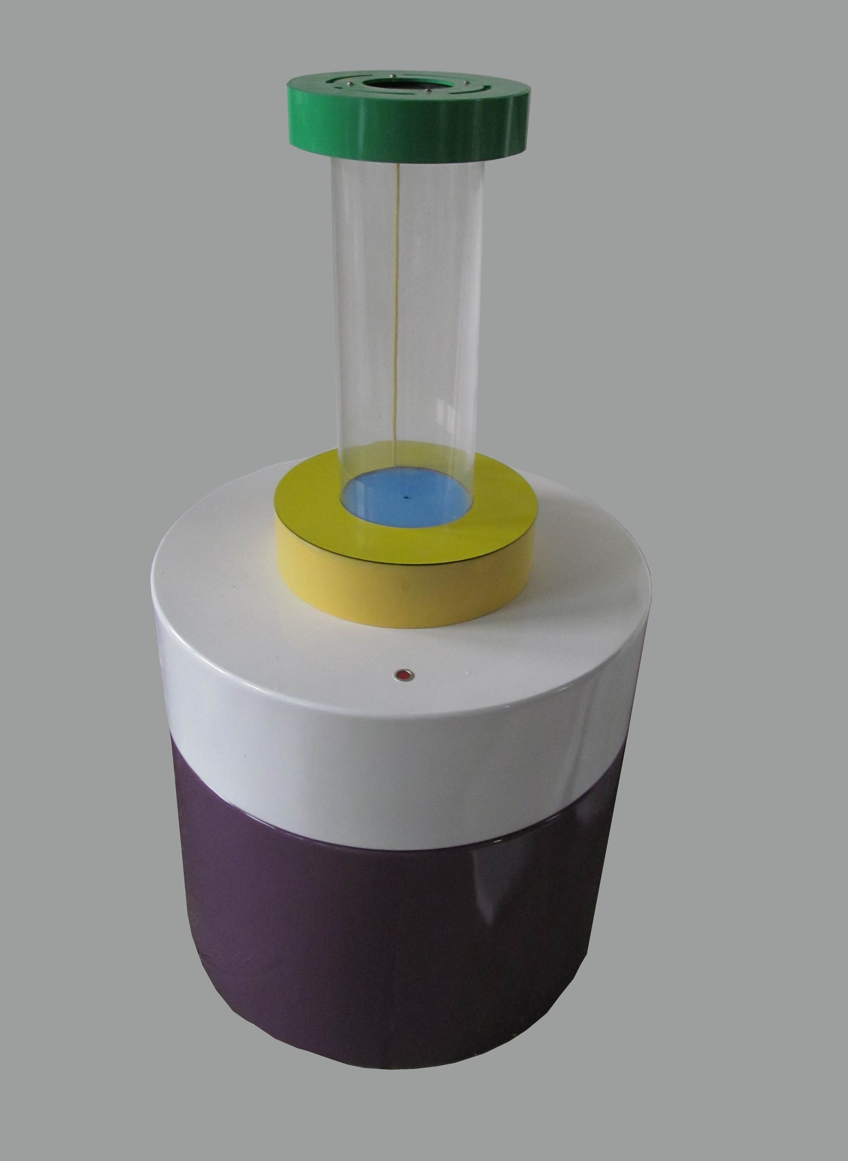 規格:Φ800×1600,底臺:Φ800×700,ABS工程塑料,開模一次成型。臺面面板木質烤漆。龍卷風的形成主要是由云層的上下溫差造成的,下降的冷空氣和上升的熱空氣形成了氣流渦旋,當這種旋轉氣流達到一定的強度時,便從云中降至地面,形成漏斗狀云柱。此展項由煙霧發生裝置、抽風機、展架等組成,再現龍卷風的狀態。觀眾按下啟動按鈕,啟動展項演示,觀眾可以看到水霧在抽風機作用下,形成漏斗狀,和龍卷風產生的漏斗狀云柱一樣。