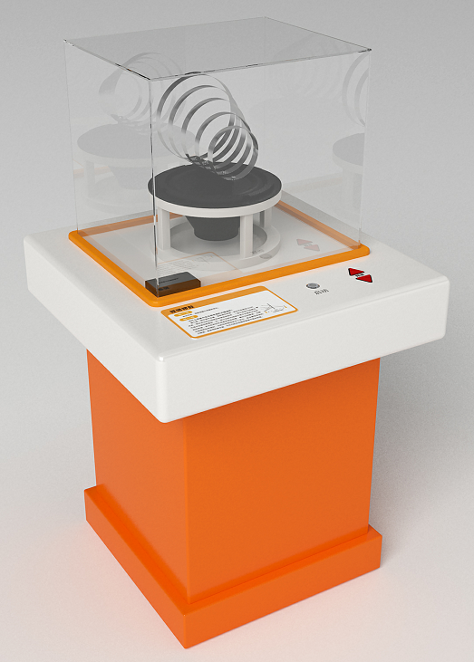 功能概述:展項由加速線圈、軌道、停球機(jī)構(gòu)、防護(hù)罩等構(gòu)成。觀眾按下“啟動”按鈕,停球機(jī)構(gòu)將金屬球釋放,通電后軌道內(nèi)金屬球會越轉(zhuǎn)越快。