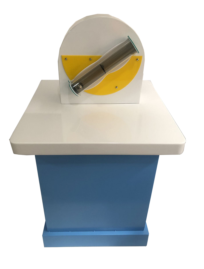 三、功能概述:本展品主體為一組由三塊全反鏡組合而成的可旋轉(zhuǎn)觀察通道。我們都知道,單塊平面鏡成像時,無論鏡子如何旋轉(zhuǎn),鏡子內(nèi)的像是不跟著旋轉(zhuǎn)的。本體驗裝置里裝有三面鏡子,并按一定角度組合,使得光線從一端必須經(jīng)過三次反射才能到達另一端,旋轉(zhuǎn)本裝置,三塊平面鏡同時轉(zhuǎn)動,站在裝置對面的另一人的頭部雖沒轉(zhuǎn)動,但三塊平面鏡對入射光三次反射的位置起了變化,造成他的鏡像或左右或上下顛倒的現(xiàn)象。