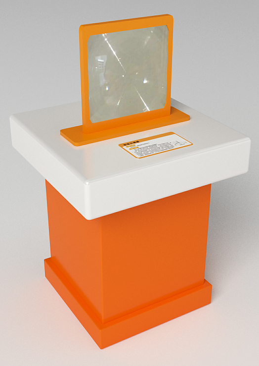 三、功能概述:展品由隱形裝置、光路展示裝置構(gòu)成。隱形裝置有五棱鏡、三棱鏡各6塊,組成一個光路折射組合,讓光線繞開中間的區(qū)域,達到隱形的目的,觀眾將測試棒插入棱鏡組中間的洞,會發(fā)現(xiàn),棒的中間那段消失了,同時光線只避開棱鏡組中間的區(qū)域,棱鏡后面的圖案同樣清晰可見;光路演示裝置由激光器、移動機構(gòu)、棱鏡組、操作手輪、傳動機構(gòu)等構(gòu)成。轉(zhuǎn)動手輪,啟動激光器,并移動激光的入射點,可清晰看到光路的變化。