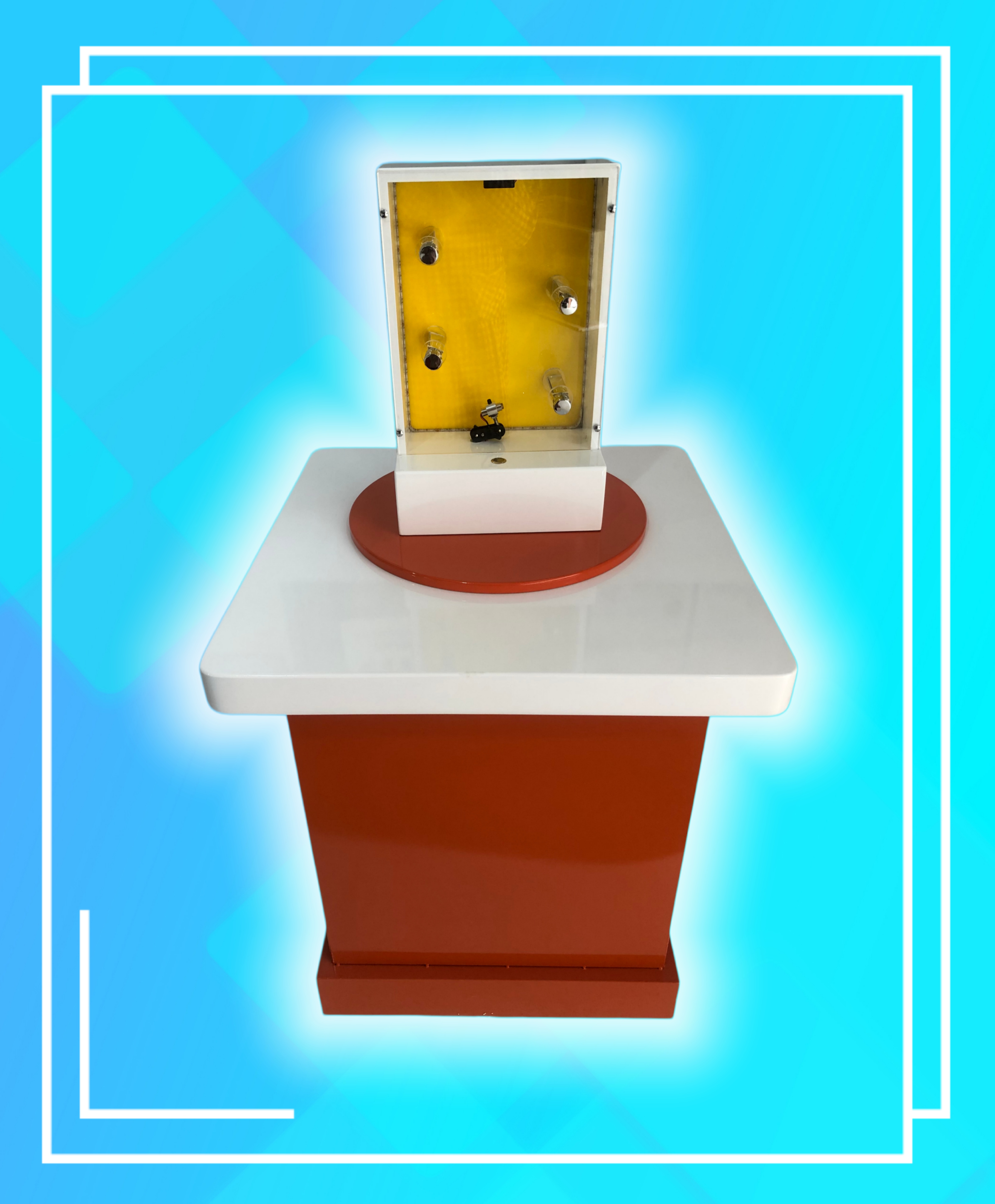 功能概述:本展項展示了形狀和質量相同的演示球(重心在一條水平線上)碰撞時的動量守恒現象。參觀者可以像牛頓和伽利略那樣學習力學原理、重力以及運動定律。觀眾輕輕拉起一個球并放手,觀察其碰撞現象;再拉起兩個或多個小球進行碰撞,觀察現象。通過演示讓觀眾了解作用力與反作用力是相等且相對的這一原理。