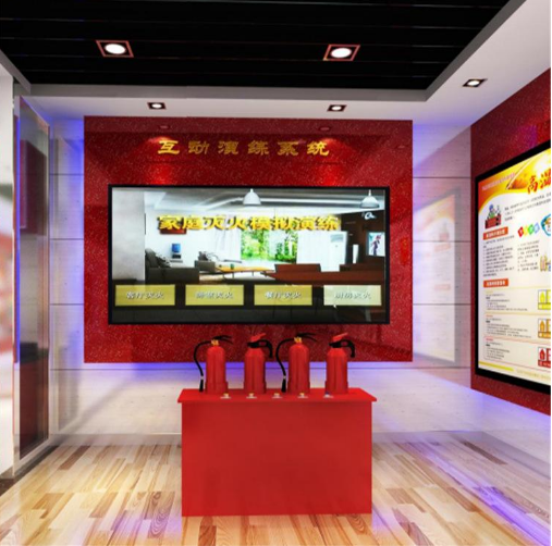 規格:投影儀1套,幕布(100寸)1塊,主機系統1套,仿真滅火器1套,軟件系統1套,包含五個基本場景:臥室、廚房、客廳、衛生間和辦公室。參與者根據屏幕中不同類型的虛擬火災場景,拿起仿真滅火器進行模擬滅火游戲,通過大屏幕了解關于火 災逃生自救相關知識,提高公眾的防災意 識及應對災害的能力。