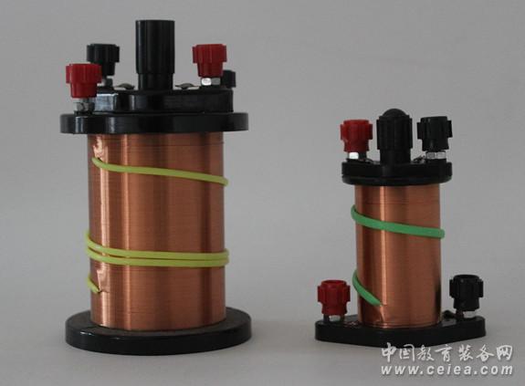 產品由演示原線圈、演示副線圈、軟鐵芯三部分組成。線圈骨架采用酚醛塑料制作,演示原線圈骨架內徑13mm,外徑22mm,線圈采用QZ0.59mm高強度漆包線分四層平繞400±8匝,繞線寬度65mm,線圈表面有繞向標志;演示副線圈骨架內徑35mm,外徑49mm,線圈采用QZ0.27mm高強度漆包線分五層平繞115±20匝,繞向和演示原線圈一致,繞線寬度69mm,線圈表面有繞向標志;鐵芯采用直徑12mm的軟鋼棒制作,長度113mm,鐵芯上端裝有塑料手柄。
