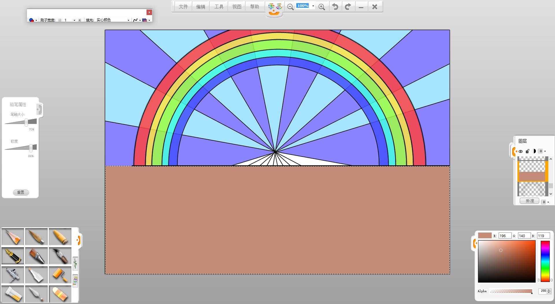 14.使用魔術棒工具選區后,使用油漆桶工具上色,繪制出彩虹。