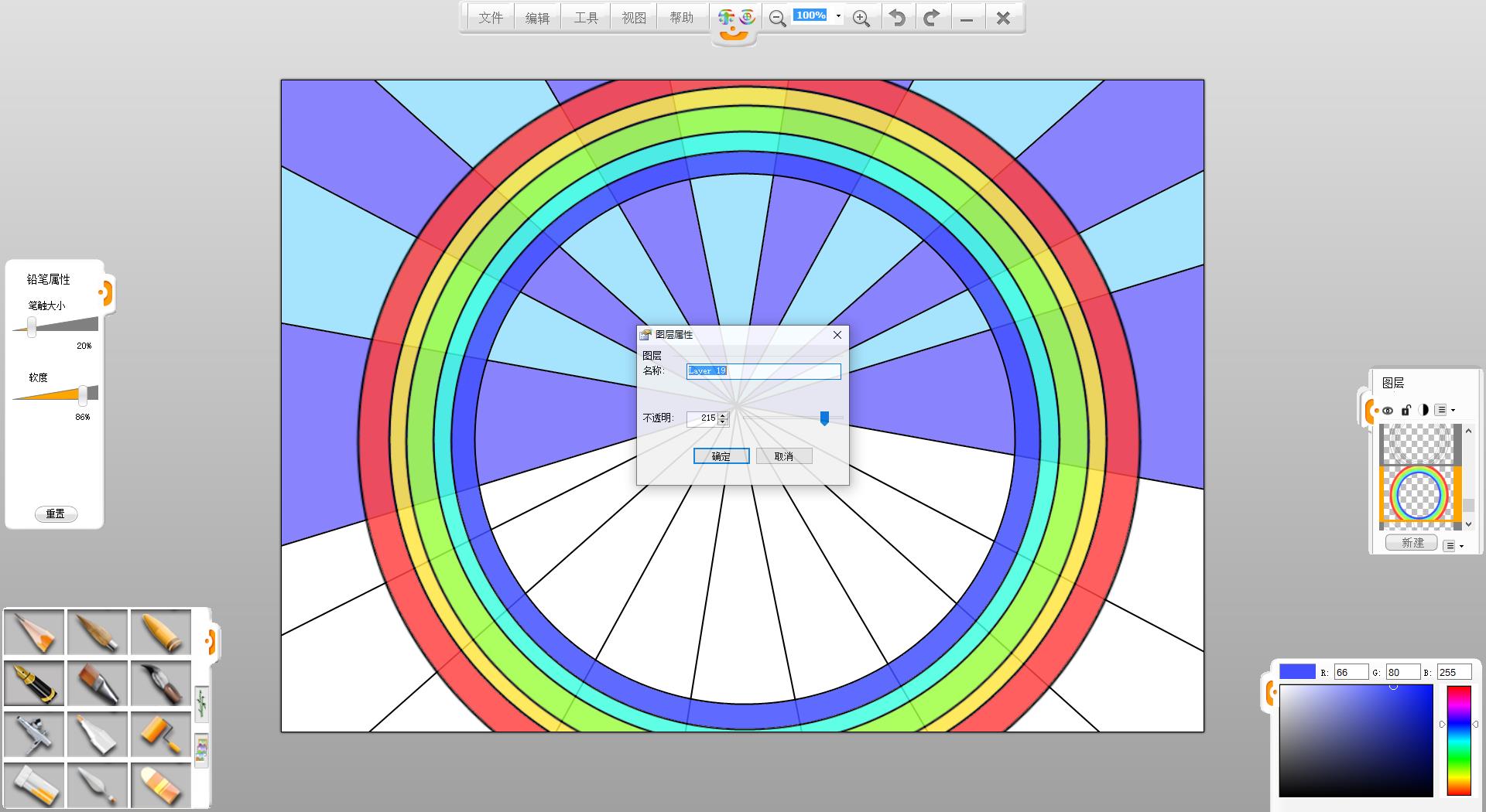 15.點擊圖層透明度按鈕,將顏色圖層的透明度調低至215。