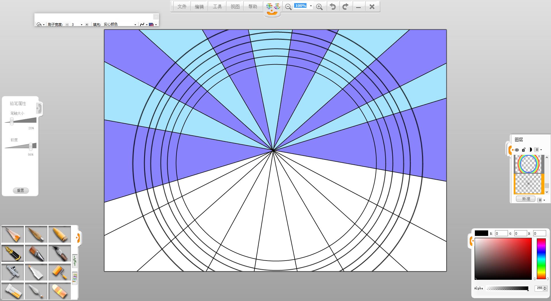 13.使用工具菜單下的橢圓工具,按住shift鍵繪制六個同心圓。