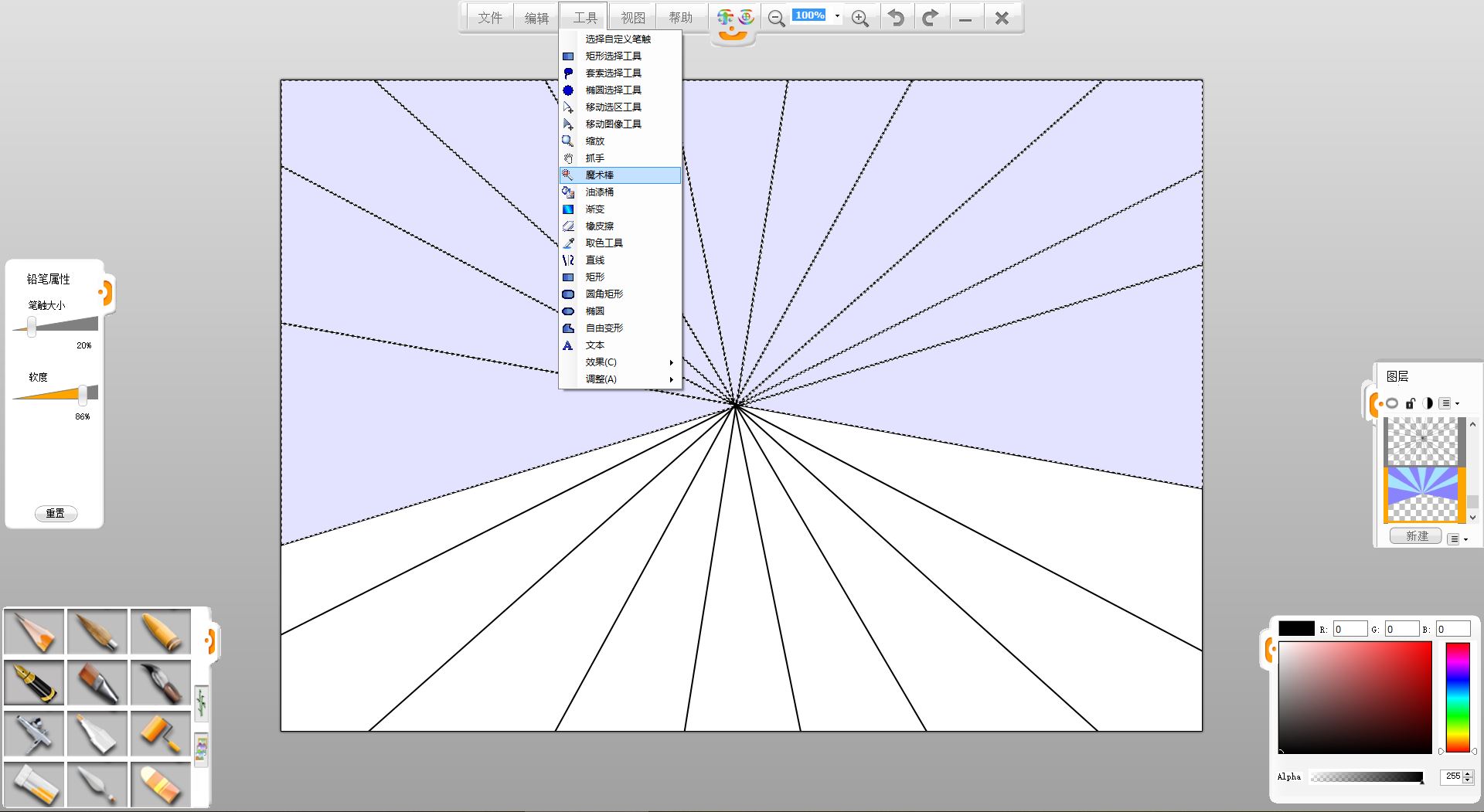 12.使用工具菜單下的魔術棒工具選區,再使用油漆桶工具進行上色。