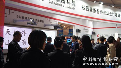 作為智慧教育裝備綜合解決方案生產(chǎn)商與集成商及國家高新技術(shù)企業(yè),在此次合作周中廣視通展示了實驗教學(xué)云終端、智慧書法教室等產(chǎn)品。廣視通自主研發(fā)的實驗教學(xué)云終端是第72屆中國教育裝備展示會金獎產(chǎn)品,是一款針對中小學(xué)實驗教學(xué)的信息化產(chǎn)品,以“平臺+終端+服務(wù)”為基礎(chǔ)研發(fā)理念,以中小學(xué)實驗在線為平臺支撐,整合海量優(yōu)質(zhì)資源,結(jié)合多媒體觸控一體機(jī)、平板、電腦、手機(jī)等多樣化終端,有效解決了實驗課程開課率不高,實驗裝備不完善,學(xué)生對科學(xué)實驗的興趣不高,實驗裝備的使用與維護(hù)不到位,等實驗教學(xué)和管理的疑點、難點、痛點等問題,有效提升了教學(xué)質(zhì)量。