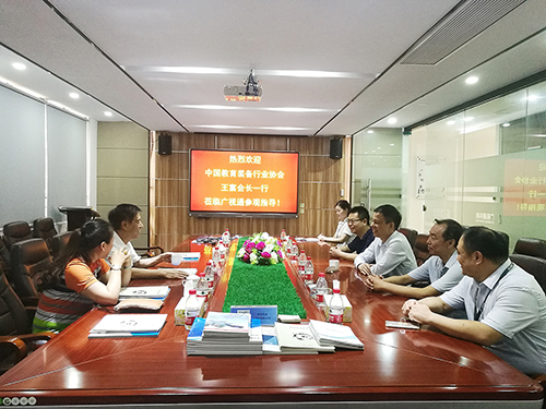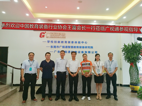 2018年9月23日,教育部關工委常務副主任、中國教育裝備行業協會會長王富、廣東省教育裝備行業協會秘書長王桂花一行蒞臨廣東廣視通科教設備有限公司參觀指導。公司董事長陳登貴先生表示熱烈歡迎并熱情接待。