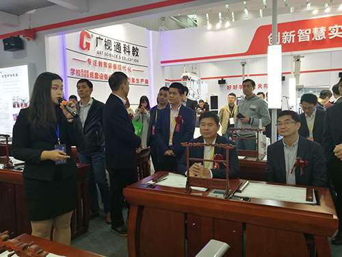 廣視通作為學校教育裝備綜合解決方案生產商與集成商,在展會上亮相便受到了多方的關注。教育部關心下一代工作委員會常務副主任、中國教育裝備行業協會會長王富,廣東省教育廳副巡視員邱克楠,廣東省教育裝備中心主任彭紅光,廣東省教育裝備行業協會會長陳學機等領導,以及廣東省各地級市教育裝備部門負責人和學校老師代表們、教育裝備界同仁紛紛來到廣視通展位進行參觀,會場摩肩接踵,熱鬧非凡。