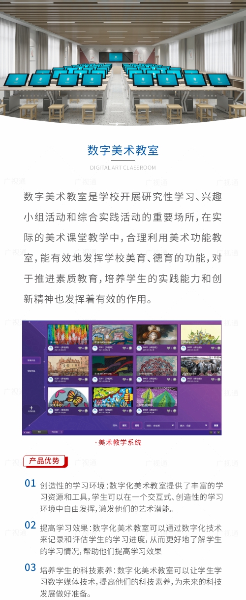 教育裝備數字化一站式解決方案,智能理化生實驗室、中考實驗操作考評系統、實驗仿真與教學系統、數字書法教學云系統、中學AI教考實驗室(升降式/便攜式智能終端)、頂裝/吊裝實驗室、探究實驗室、科學實驗室、人工智能科創實驗室、智慧書法教室、數字音樂教室、美術教室、數字地理教室、數字歷史教室、心理咨詢室、閱覽室、舞蹈室、陶藝室、烹飪教室、通用技術實驗室、勞動教育功能教室、科普探究等
