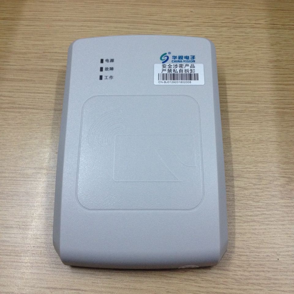 華視CVR-100UC身份證閱讀器 此款機型是北京明華誠信科技有限公司二代證卡機部專為第二代居民身份證信息處理銷售的一款臺式身份證驗證器,該款機型采用USB接口與電腦連接,采用國際上先進的TypeB非接觸IC卡閱讀技術,通過內嵌的專用安全控制模塊(SAM),將芯片內的個人信息資料讀出并將此信息上傳至計算機,是北京明華誠信公司銷售的臺式二代證專用閱讀器的系列產品之一。 一、產品特點 1、使用方便:本設備為二代證驗證器,符合ISO 14443 Type B 標準,采用無線傳輸方式,將身份證內個人信息資料讀出,并可導入用戶工作系統,極大地提高效率。 2、認證準確:可以通過隨機解碼軟件,將身份證內的數字壓縮相片 還原成可視相片,進行"人證同一性"認定。 3、應用廣泛:該設備簡潔大方,體積小巧,操作簡便,可靈活應用于公安、政法、民政、銀行、賓館、郵局、證券等場所進行身份核驗。 4、擴展靈活:提供開放的應用程序接口(API),供用戶進行應用開發,支持VC/VB/PB/DELPHI等開發平臺。 二、應用范圍 1.執法部門(旅店管理、網吧管理、交通管理、出入境管理); 2.電信、郵政、銀行、保險、證券客戶證件信息登記; 3.勞動部門、人事部門、民政部門人事管理; 4.高校報考錄取、圖書館借閱人信息管理; 5.其他需要對人員的有效身份進行登記、管理的部門。