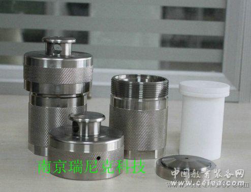 高壓消解罐:高壓消解罐:又稱消解罐、消化罐、水熱合成反應釜、水熱釜、壓力溶彈、高壓釜、悶罐等。 外罐不銹鋼,內杯采用優質的聚四氟乙烯材質加工而成。應用于納米材料、化合物合成、材料制備、晶體生長等方面。以及氣相、液相、等離子光譜質譜(ICP–MS)、原子吸收和原子熒光等化學分析方法的樣品前處理,用于食品、地質、冶金、環保、商檢、化工、核工等系統,消解農殘、食品、稀土、水產品等有機物中Pb、Cu、Zn、Fe、Ga、Rb、Hg、Sn等重金屬。 高壓消解罐水熱釜是利用罐體內高溫高壓密封體系(強酸或強堿)的環境來達到快速合成、消解難溶物質的目的,可使合成、消解過程大為縮短,且使被測組份的揮發損失降到最小,提高測定的準確性。多用于有機合成、萃取和水熱合成等工作。 通過對GB/T5009.11-2003砷、GB/T5009.12—2003鉛、GB/T5009.13—2003銅、GB/T5009.17—2003汞國家標準方法中樣品前處理方法的探討,透過現象看本質,它們具有相同的作用原理。經對比實驗及重復性實驗表明,重復性良好,RDS□5%,尤其在測定食品中易受污染的痕量鉛及易揮發砷及總汞時,結果均優于其他樣品處理方法。高壓消解法實現了一份樣品消解液同時對食品中砷、鉛、銅、汞的測定,大大提高了工作效率,空白值低、揮發性元素不易損失,避免環境污染,認為高壓消解法為標準分析方法。樣品前處理能體現出實驗室水平的差距。 在化工、材料、高分子等科學作為水熱合成反應釜。 水熱合成反應釜是在一定溫度、壓力條件下利用高溫高壓的水溶液使那些在大氣條件下不溶或難溶的物質溶解,或反應生成該物質的溶解產物,通過控制溶液的溫度差使產生對流以形成過飽和狀態而析出生長晶體。可用于納米材料的制備、化合物合成、晶體生長等方面,也可以用于小劑量的合成反應,是高校極常用的小型反應釜。