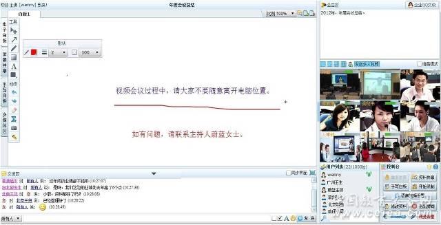 電子白板標注: 在開會過程中,通過電子白板畫圖功能,可以對當前共享的文檔進行在線標注,增加記憶和培訓效果,通過限制只有發言人以及主講才能畫圖避免會場的混亂