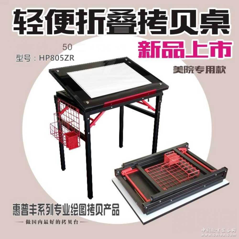 結構技術參數: 1)采用雙邊雙支撐折疊鋼架結構,標配置定制拷貝功能的鋼化玻璃桌面(尺寸800*550mm,厚度5mm),鋼化玻璃內含LED光源透光面不小于350*550mm并含有標尺刻度,玻璃下內襯E1三聚氰胺桌面底板; 2)桌面板下雙側采用繪圖專用傾角調節鉸鏈,經久耐用,保證桌面平整、同步控制調節傾斜度調節0-50°;靠身邊桌面板緣配置高約8mm的折邊擋板條(鋼板厚度1.0mm),可以擋住文具等用品;可以滿足拷貝和繪圖作業雙重需求; 3)桌支架左側配置有儲物鋼絲婁,可以放置文具和書籍等,牢固耐用;桌支架右側配置有書包勾,方便掛有書包或者文具袋等。 4)桌腿支架底部采用塑膠木調整螺絲,便于調節水平等功能,保證整體結構的堅固、穩定; 本特制產品的整體設計科學、合理,具有多功能性,充分體現教學理念上的“專業、實用、耐用和兼用”的特點,質保5年以上, 滿足多學科多專業拷貝和制圖教學作業的需求。