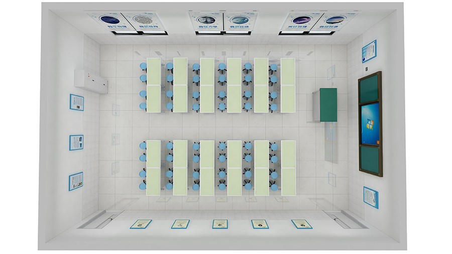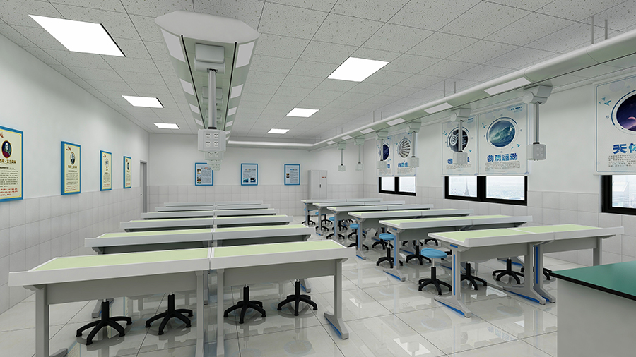 引入國際先進理念,革新傳統實驗室建設施工過程,徹底消除管線鋪設繁多、教室地面被破壞,不同學科實驗室對樓層要求嚴格等弊端,施工方式從地面(隱蔽)走向頂部(開放),充分解放教室地面,為教室承載更多功能提供可能。
