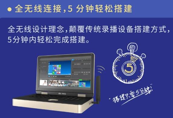 全無線設(shè)計(jì)理念,顛覆傳統(tǒng)錄播設(shè)備搭建方式,5分鐘內(nèi)輕松完成搭建。
