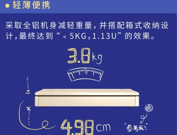 采取全鋁機(jī)身減輕重量,并搭配箱式收納設(shè)計(jì),最終達(dá)到“﹤5kg,1.13U”的效果。