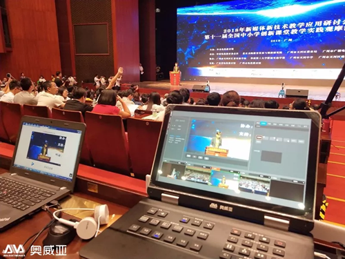 5月28日至31日,由中央電化教育館主辦的2018年新媒體新技術(shù)教學(xué)應(yīng)用研討會暨第十一屆全國中小學(xué)創(chuàng)新課堂教學(xué)實(shí)踐觀摩活動(dòng)在廣州白云國際會議中心召開。奧威亞攜移動(dòng)錄播亮相現(xiàn)場,為大會開/閉幕式及論壇提供獨(dú)家的全程直播與錄播服務(wù),同時(shí)也是課堂主要的直播技術(shù)提供商。經(jīng)統(tǒng)計(jì),通過直錄播,近70萬人在線觀看了活動(dòng)實(shí)況,進(jìn)一步擴(kuò)大了大會的影響力。