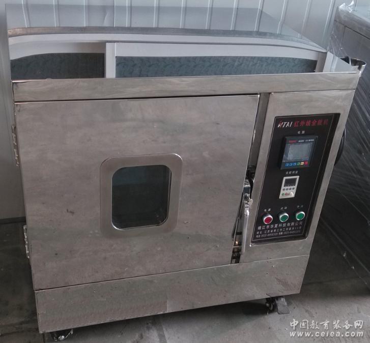 專利號:201020230503.5 201120226516.X 一、簡介: HTF-12/24P翻滾式紅外線全能機是本公司研發的最新一代翻滾式紅外線輻射熱傳導式染樣機。該機結合了普通紅外線機和高溫甘油機的特點和優點,克服了它們的不足,是一款集環保、節能、高效于一體的高性能打樣機,是目前取代普通紅外線和甘油及高溫高壓打樣機的最佳產品,是染樣機領域的一場技術革命,必將給紡織、印染、化工及助劑行業帶來巨大的經濟效益和火熱社會效益。 二、主要優點: 1、安裝可編程智能液晶電腦,多種表達方式,實時監控試驗倉工作狀態。 2、使用涂層紅外線燈管加熱,功率小,沒有油煙污染,沒有甘油損耗,且保溫、恒溫效果好,又可節省巨額甘油及用電費用。 3、采用全新的測控溫技術,可確保該機長期穩定運轉,壽命遠高于普通紅外線機。 4、采用變頻器控制,自動正反轉裝置并可調節杯盤運轉速度,更好的配合現場大貨工藝的運動方式,360℃翻滾運動使杯內的染液來回翻動,使染液上色率更均勻,適合各種布料染色,可得到最平整及均勻的樣布。 5、采用風冷式降溫系統,不需外接水源,減少了水資源的浪費。 6、可使用不同浴比、不同布種同時打樣,并可在升溫途中隨時取放染杯而不影響打樣速度及效果。 7、浴比小,最小可打1:5不色花,可與小浴比染色機相配套。 8、整機均為不銹鋼鏡面板制成,占地面積小。