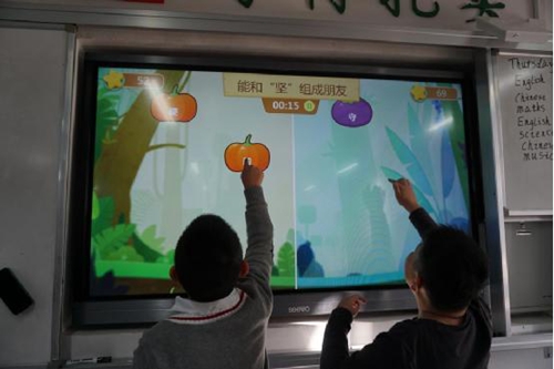 陳老師對(duì)此感觸頗深:“像對(duì)希沃白板5,剛開始我是抵觸的,因?yàn)榱?xí)慣了用PPT。后來在學(xué)校老師的帶動(dòng)下,使用了幾次后就明顯發(fā)現(xiàn),操作更方便,還有專門針對(duì)教學(xué)的設(shè)置,像四線三格、英漢詞典這樣的英語工具很實(shí)用,特別是課堂互動(dòng)模板很精彩。以前讓學(xué)生上來互動(dòng)幾乎只有情景對(duì)話,現(xiàn)在參與更多連線配對(duì)之類的互動(dòng)游戲,既加深了學(xué)生對(duì)知識(shí)點(diǎn)的記憶,又提高了他們的學(xué)習(xí)積極性和興趣,改變真的是很大。”