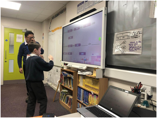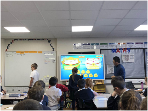 我深知一堂好的數學課首先要能激發學生的興趣,讓他們能被老師吸引,英語不好的我只能靠技術來彌補。于是我向英國老師秀出我們信息技術對教學的幫助。