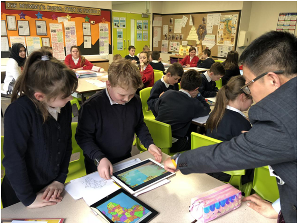 除了上海特色的教學方法,大王老師另外一件事也引起小小的轟動:他把希沃白板、希沃授課助手等信息化教學工具帶到了英國課堂。