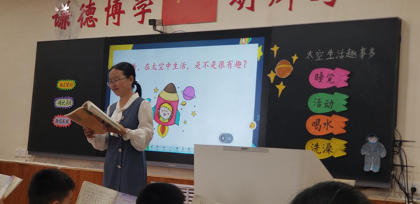 在語文《太空生活趣事多》的課堂上,得益于希沃易課堂對學情數據支撐,郭老師能夠實時掌握學生學情,并調整教學節奏,對疑難點展開深入講解。為了讓學生更好地理解抽象知識,郭老師還利用易課堂的豐富學科工具、游戲工具等,讓知識呈現更簡單、更有趣味。課堂上,學生爭先搶答發言,現場氛圍非常活躍。
