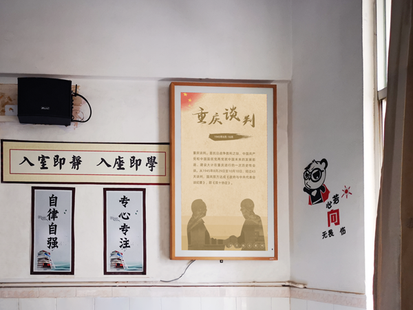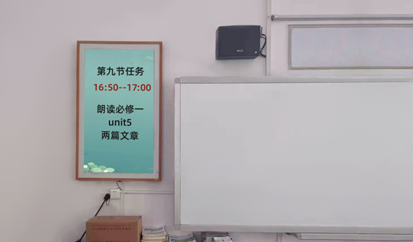 高考倒計時、黨史故事、名人名言、放假通知……這些豐富內容,以圖片或者視頻的形式,在教室中的一塊電子屏幕上生動呈現(xiàn),吸引學生課前課后駐足觀看。這就是高州一中的校園一隅。