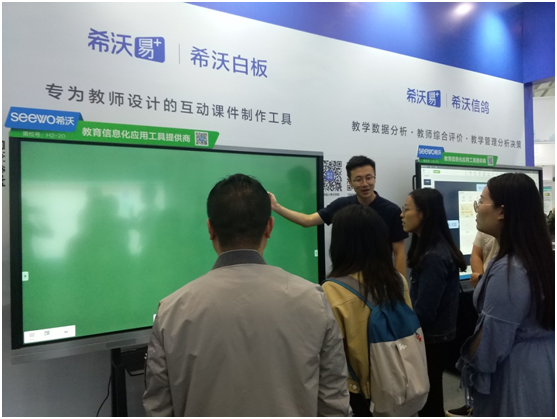 本屆教博會上,希沃的150臺智能交互平板,主要用于展會工作坊說課、示范課、參展商方案展示等�,F(xiàn)場的許多老師早已是希沃產(chǎn)品的使用者,不僅不需要志愿者指導(dǎo)使用,還自如地開啟與使用希沃白板、希沃授課助手等應(yīng)用軟件,并向其他老師介紹信息化應(yīng)用為自己的教學(xué)帶來的改變。