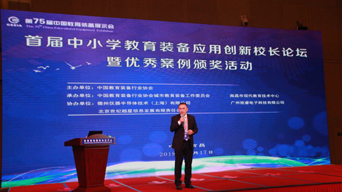 6.希沃協辦首屆中小學教育裝備應用創新校長論壇暨優秀案例頒獎活動,希沃黃明寒在大會啟動儀式上致辭。同時,烏鎮植材小學副校長陸炳康以希沃信鴿、希沃白板、班級優化大師等工具的實際應用為基礎,進行了《一所百年老校的信息化變革之路》的主題分享 。