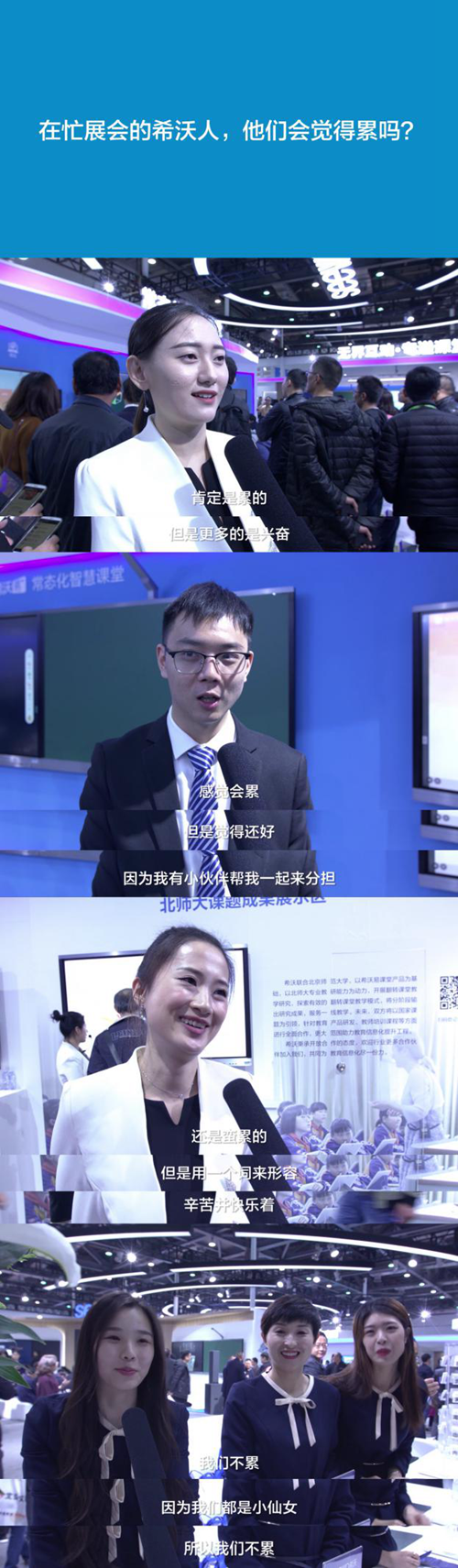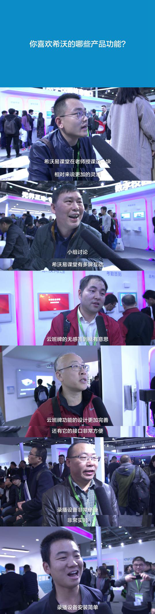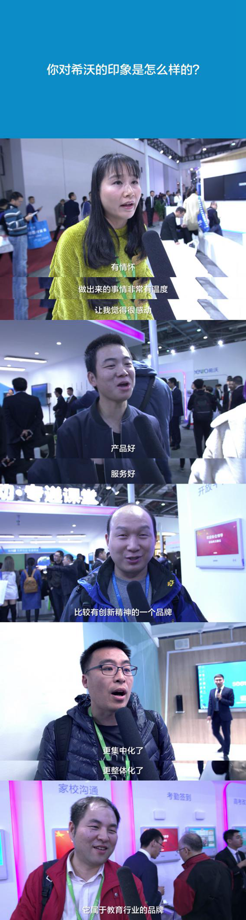 剛看完希沃公益行紀錄片的觀眾感動地告訴我們,希沃是一個很有情懷的品牌,而公益行做的都是溫暖人心的事;路過的一位參展者說,他來自山區,非常喜歡互動錄播,當地老師需要這樣的設備共享優質教學資源。感謝他們的肯定,讓我們發現,做教育的更多意義所在。