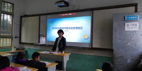 午飯后是孩子們的“午休”時間,這也是他們難得的休閑時光。我到教室里看看孩子們平時都有什么娛樂活動,恰好看到了兩個在下象棋的小女孩,引起了我的好奇心。我問她們是誰教她們下象棋的,她們說是看別人下棋就學會了,我很驚訝,她們的自學能力這么強。如果有更好的教學資源和學習平臺,相信她們可以拓寬視野、掌握更多知識,于是我指著希沃一體機告訴她們,這塊大平板上有很多像學習象棋之類的教學資料,以后就可以學習到更多東西。其他小朋友們也很欣喜的問我,“真的嗎?可以學習唱歌嗎?”,“可以學習跳繩嗎?”,“可以學習修房子嗎?”,你一句、我一句的,我一時不知道如何回答,只應(yīng)和他們“當然可以,當然可以”,看著他們天真的模樣,內(nèi)心百感交集,深深的覺得城鄉(xiāng)教育資源差別如此之大,或許,我們希沃公益行的意義,就在于此吧。
