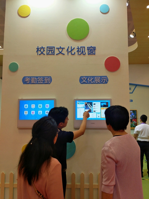 而以云平臺、云服務(wù)器為基礎(chǔ)的希沃云班牌,則豐富多彩地展示了學(xué)校信息化建設(shè)成果,實現(xiàn)學(xué)校信息和文化的多維度呈現(xiàn)與信息化管理。通過云班牌,老師可以便捷地上傳班級風(fēng)采、定制個性化界面、實時對接校本數(shù)據(jù)、實現(xiàn)家校實時互動。其中人臉識別的簽到考勤功能引起了觀展人士的注意,來自廣州的朱老師說:“班牌的這個人臉識別簽到很適合幼兒考勤,還有家校溝通功能,也對我們幼兒園這些沒有手機(jī)的寶寶們提供了獲取家長留言的渠道,看好這款產(chǎn)品。”