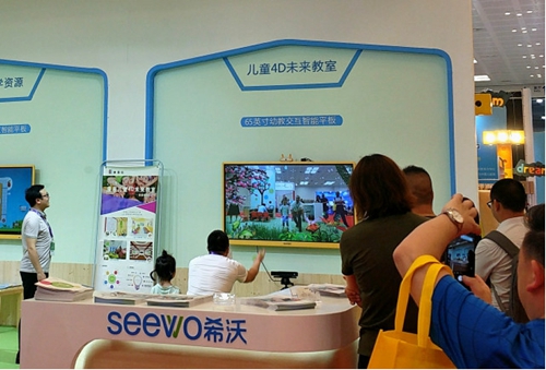 此次希沃與康普達(dá)聯(lián)合打造的兒童未來4D教室也頗為吸睛,許多小朋友體驗后不肯離開希沃展位,也引得現(xiàn)場不少“老小孩”大玩“變臉”等體驗互動體感益智游戲。參觀人士現(xiàn)場體驗后表示,這樣將教學(xué)和游戲結(jié)合的方式,讓小朋友的感知非常直觀,也樂于參與其中,大大激發(fā)學(xué)習(xí)自主性。