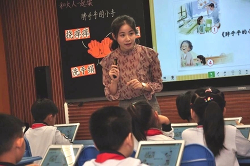 觀摩課環節,岑老師帶來了一年級語文《和大人一起讀:胖乎乎的小手》,并結合希沃易課堂截屏推送課件、共享圖片資源、主觀評價、推送課外閱讀資料等交互功能,激發了學生讀、說、演的學習興趣。