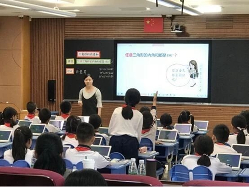 而對于數學課《三角形的內角和》和《圖形的旋轉》,許老師和廖老師則分別展示了平板電腦在課堂教學中的應用。基于希沃易課堂,學生直接在seewoPad完成老師推送的微課、練習題的學習,并通過系統向教師平臺反饋學習效果,使課堂教學更具針對性。