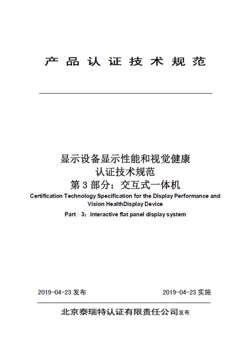 為從質(zhì)量管理角度解決這一問題,北京泰瑞特認(rèn)證有限公司、國家廣播電視產(chǎn)品質(zhì)量監(jiān)督檢驗(yàn)中心與廣州視睿電子電子科技有限公司聯(lián)合制定了《顯示設(shè)備顯示性能與視覺健康認(rèn)證技術(shù)規(guī)范