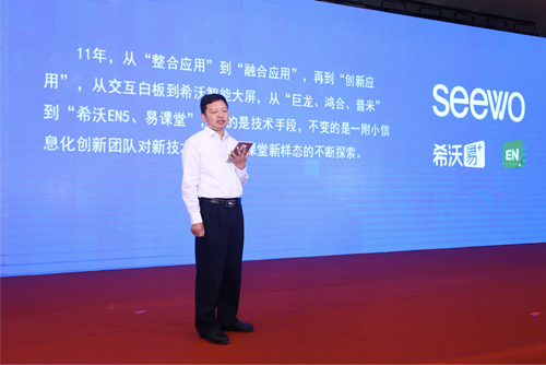 5月26日,淮陰師范學院第一附屬小學校長唐玉輝來到央館觀摩活動希沃分論壇《成長,如何跟上未來的腳步?》,就淮師一附小近年在信息化教學上取得的經驗作分享。