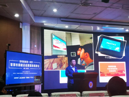 會上舉行了高新一中智慧校園啟動儀式。寶雞市教育局副局長王偉波講話指出,構建處處可學、時時能學、人人皆學的智慧教育體系。