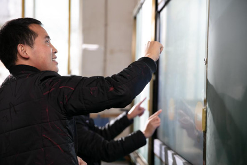 (魯老師正在體驗信息化設(shè)備)