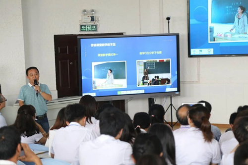 “我們剛開始時經歷了不少的艱辛。”楊波老師介紹說,豐都中學是在2016年開始智慧課堂建設的,但項目真正實施是在2018年的四月,八月份正式啟動,九月教育局組織第一次推進會,十月組織了第二次。