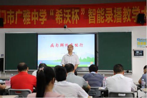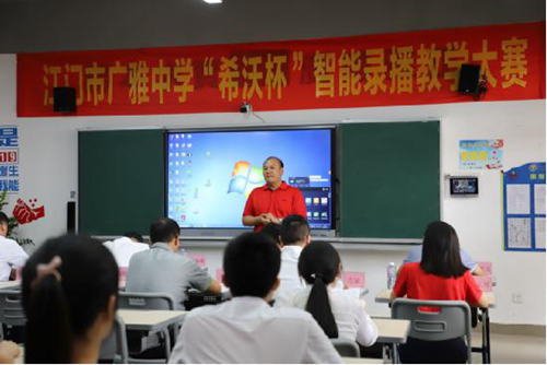 針對此次活動,江門廣雅中學的主管教學工作的高主任發表講話。他指出,本次比賽獨具創新性與示范意義,學校將希沃交互智能錄播深度應用于說課和賽課,這樣的嘗試在全省乃至全國屬首次,也感謝本次活動支持方希沃的說課培訓、課例打磨以及對決賽現場全程支持,讓賽課圓滿落地。