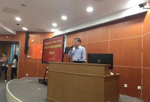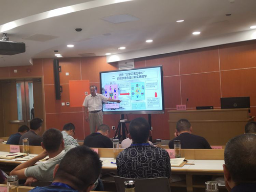 7月17日上午第一節課是由中國教育技術協會副會長潘克明給學員們帶來的專題講座——教育信息化與教育教學創新。潘會長的講座從五個方面展開:首先是要把握融合創新的特點設計和實施教學;其次是堅持“以學習者為中心”的教學理念設計和實施教學;三是把握中小學人工智能的特點設計和實施教學;四是強化教學過程的針對性和精準性實時教學;五是作為校長,要主動提升對教育信息化的領導力。