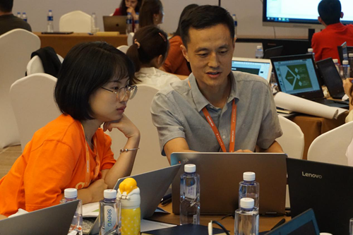 為了展現出最好的學科融合作品,老師們紛紛放棄了休息的時間。白天的培訓緊湊充實,晚上老師們學習與討論的熱情依舊高漲。房間、大廳、餐廳,伴著并不明亮的燈光,老師們仍在討論與打磨課件,精心準備。