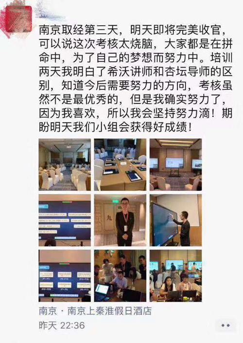 短暫的破冰環節后,老師們迎來了緊張的學習與考核。培訓現場,老師們分組學習與討論,寫滿了知識點的筆記本、此起彼伏的討論聲和臉上認真的神情,每個老師都沉浸在學習中。一位老師說:“這真是我參加過的最緊張的培訓了�!�