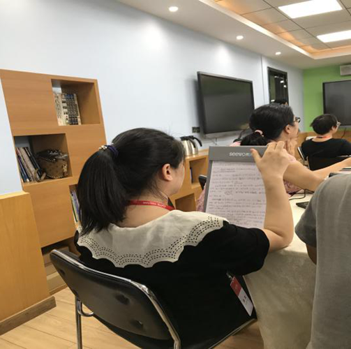 當(dāng)天下午希沃交互智能錄播產(chǎn)品線的相關(guān)代表從產(chǎn)品的硬件與軟件兩方面開展了相關(guān)內(nèi)容的培訓(xùn),培訓(xùn)課程進(jìn)行過程中,老師們認(rèn)真學(xué)習(xí)相關(guān)內(nèi)容,筆記寫滿了整整幾頁紙。通過硬件性能及操作的培訓(xùn),讓老師們相信希沃交互智能錄播能更好地支持常態(tài)化的使用,而非精品錄播一般,只是用于示范課等內(nèi)容展示,同時配合希沃交互智能平板使用,讓老師的授課更加高效便捷;軟件培訓(xùn)方面,結(jié)合希沃EN5,班級優(yōu)化大師等軟件的運(yùn)用,為老師們提供課程互動新模式新方案。