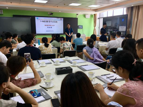 培訓(xùn)第二天,希沃邀請到云南師范大學(xué)的朱云東教授,為此次參與研修班的老師開展題為“此題目為《1+N的教學(xué)與實踐》的專題講座。朱教授結(jié)合自身教育教學(xué)經(jīng)歷,暢談信息化的必要性和深化發(fā)展,感慨教育信息化進(jìn)一步促進(jìn)教學(xué)均衡發(fā)展,因此堅定不移推廣1+N教學(xué)模式。利用人工智能+教育,實現(xiàn)一校帶多校共通發(fā)展,其中數(shù)據(jù)分析、專家指導(dǎo)、加強(qiáng)教師信息化能力尤為重要,主講教師和助教教師協(xié)同合作,進(jìn)一步融合教學(xué)。
